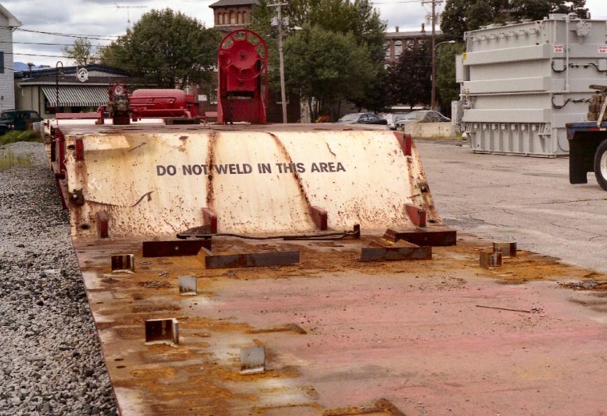 Kasgro requires that all KRL cars be cleaned to industry standards, prior to being released from use. This means that all the securements be cut off and all dunnage be removed by the current shipper or consignee. Any welds or remaining bead lines that are more than ¼" above the surface of the car must be ground down to near the surface. It is very important to NOT cut into the steel deck of any car by gouging or burning into the steel plate. This can greatly weaken the structure of the car.
