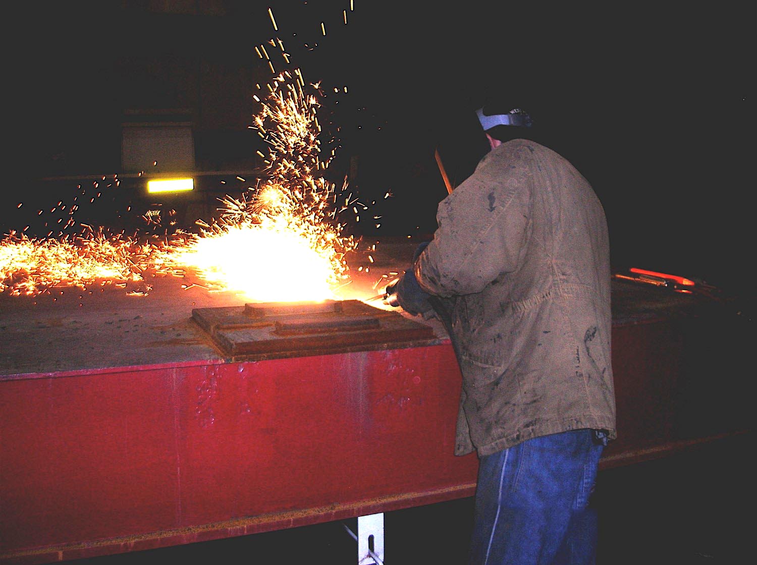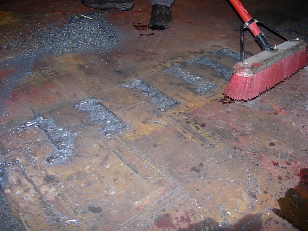 In addition to removing securements and other blocking or bracketing, all dunnage must be removed before the car is released empty to the railroad. Photo 7 shows the cutting of a steel plate that was left from a previous loading, now being removed by shop personnel. Photo 8 shows the proper cutting into the steel plate to avoid further car deck damage. Photo 9 shows the residual slag and excessive bead weld that has been efficiently ground down to the proper distance so that the car can be considered clean and ready for release.