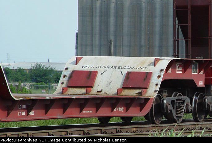 Kasgro allows welding and securement to all areas of the loading deck plate. Any cutting of or through the deck is prohibited. In regard to FD (depressed) cars, the transition area from the lower to upper deck can only be utilized for welding and securement on the sheer blocks or added steel plates. The "white" area of the transition on any depressed car is NOT to be used for securement or welding.